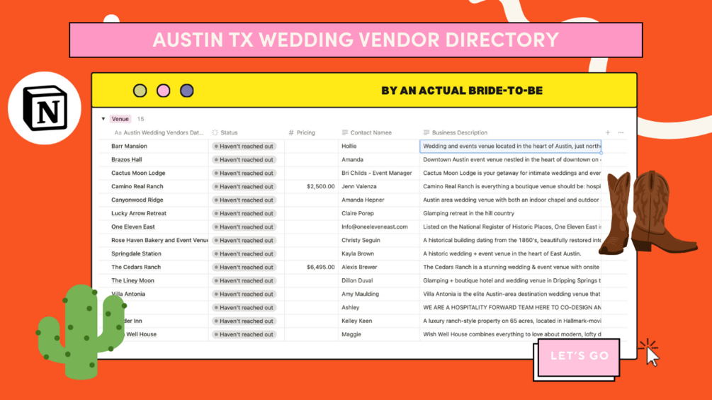 Overwhelmed with wedding vendors in Austin, Texas? Me too - until I started researching and reaching out to different vendors and realized I needed a system to organize pricing, FAQs, etc.